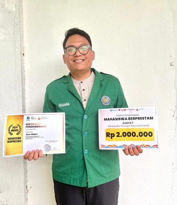 Jakarta – Ibnu Akbari, mahasiswa Program Studi S1 Manajemen Fakultas Ekonomi dan Bisnis Universitas Muhammadiyah Prof. DR. HAMKA (FEB UHAMKA), meraih penghargaan sebagai Juara 1 Mahasiswa Berprestasi dalam perayaan Milad UHAMKA ke-67.