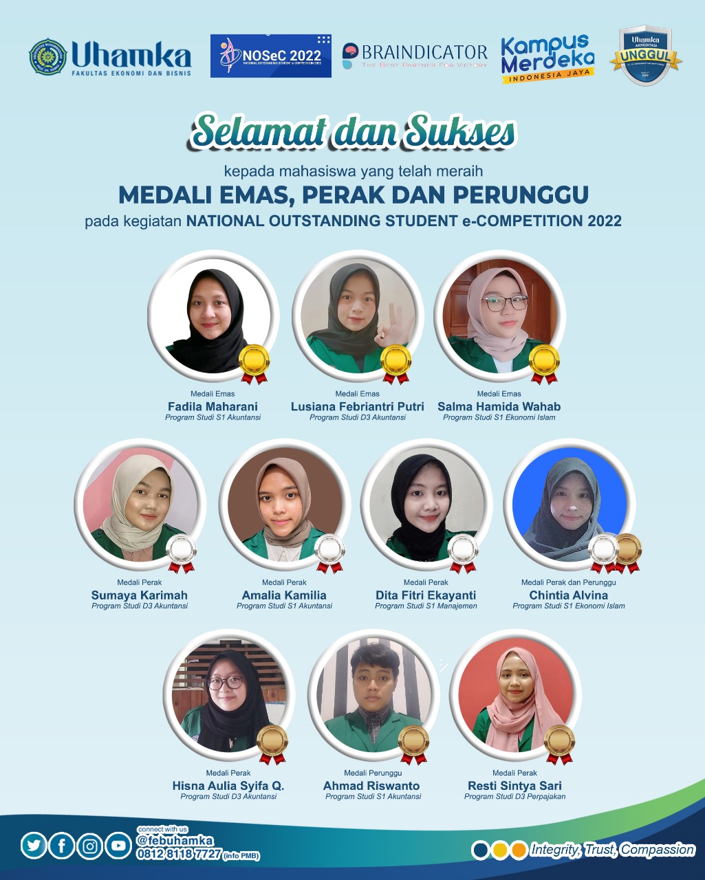 NATIONAL OUTSTANDING STUDENT E-COMPETITION (NOSeC) 2022 merupakan ajang kompetisi berskala nasional yang di selenggarakan oleh Braindicator dalam rangka untuk meningkatkan mutu Pendidikan di Indonesia Hasilnya pada kegiatan ini, FEB...