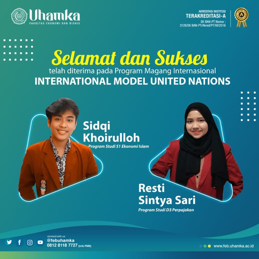 Dua (2) mahasiswa dari Fakultas Ekonomi dan Bisnis UHAMKA mengikuti Program Magang Internasional, International Model United Nations. International Model United Nations adalah kegiatan akademik yang dilaksanakan secara internasional bertujuan...