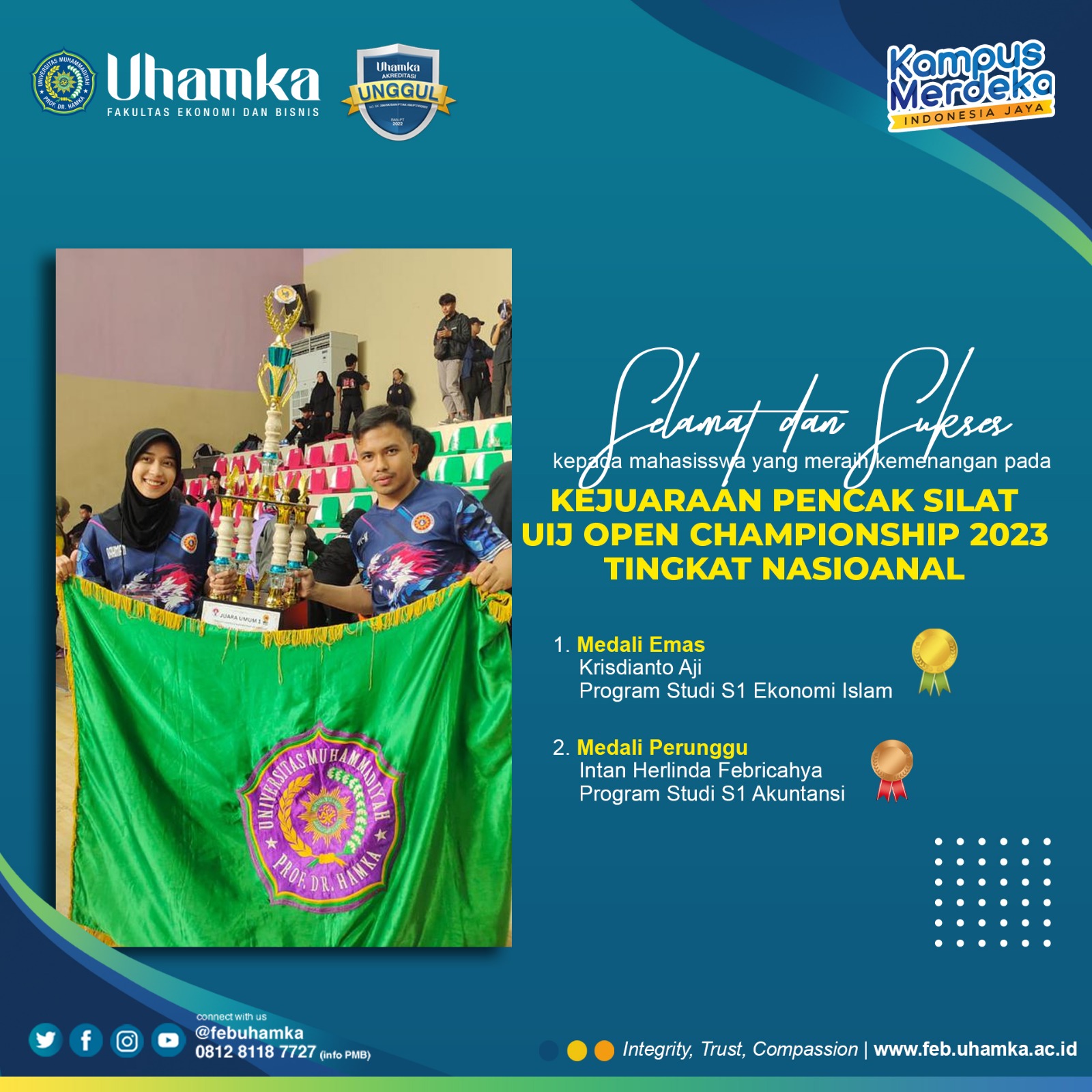 Dalam Ajang Kejuaraan Pencak Silat UIJ Open Championship 2023 Tingkat Naional, Mahasiswa Fakultas Ekonomi dan Bisnis UHAMKA berhasil menyabet medali Emas dan Medali Perunggu. Torehan medali ini berhasil diraih...