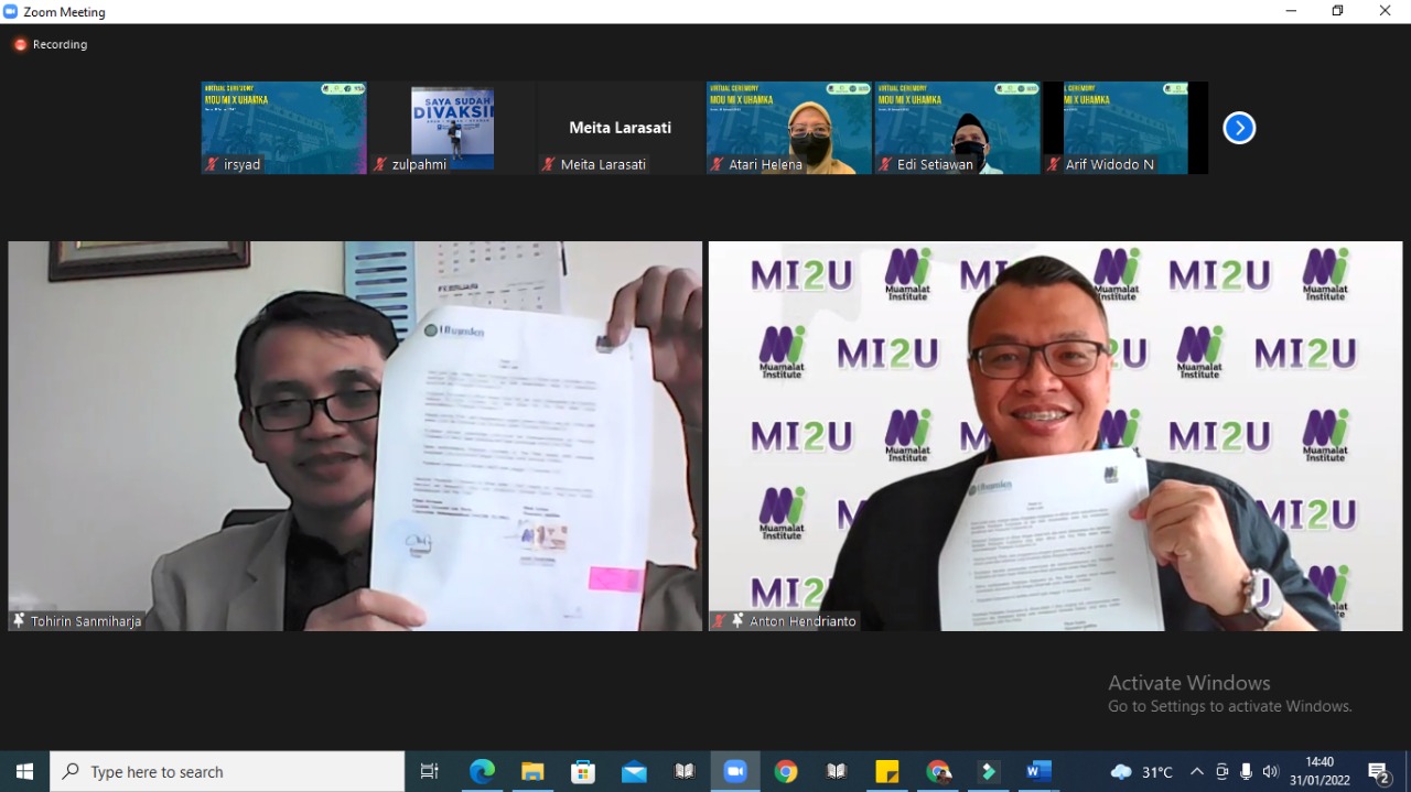Senin, (31/1) Fakultas Ekonomi dan Bisnis Uhamka (FEB-Uhamka) menandatangani Perjanjian Kerjasama atau Memorandum of Agreement (MoA) dengan Muamalat Institute. Ruang lingkup Kerjasama meliputi bidang pendidikan, pelatihan, dan pengembangan manajemen...