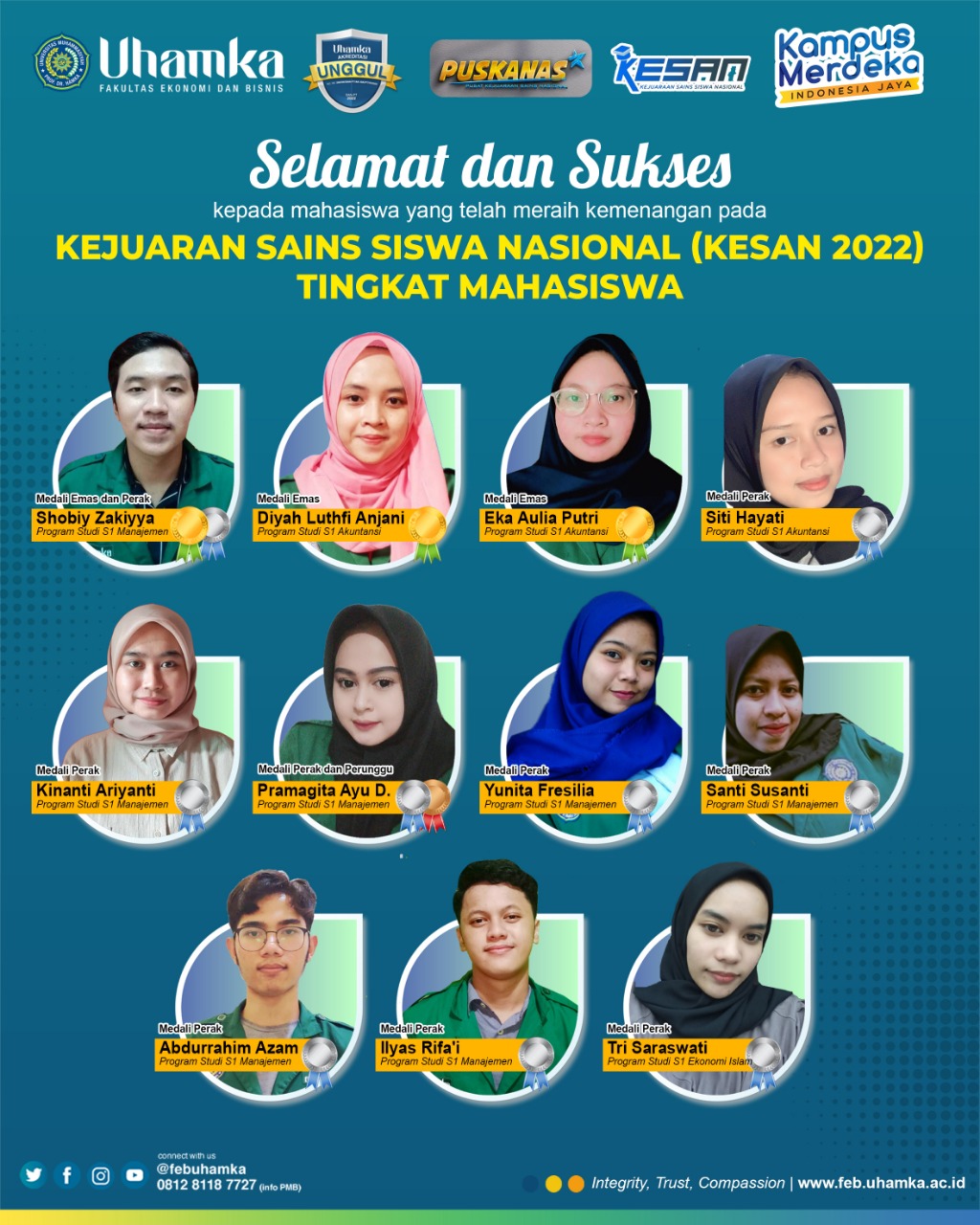 Dalam Kejuaraan Sains Siswa Nasional (KESAN) 2022 Tingkat Nasional Level Mahasiswa Bidang Ekonomi, Bahasa Inggris dan Bahasa Indonesia yang diselenggarakan oleh Pusat Kajian Nasional (PUSKANAS) mahasiswa/i Fakultas Ekonomi dan...
