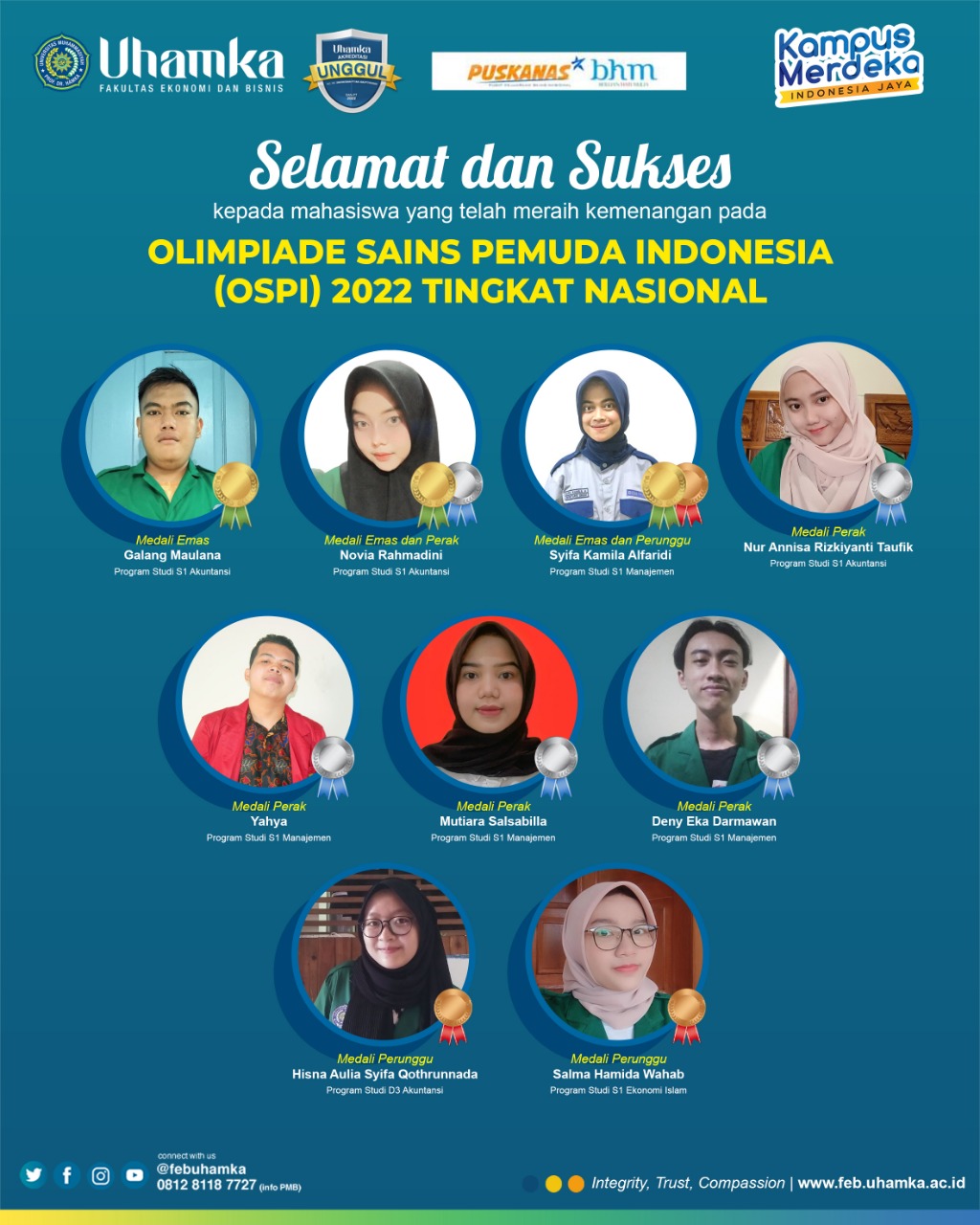 Pada Ajang Olimpiade Sains Pemuda Indonesia (OSPI) 2022 Tingkat Nasional yang diselenggarakan oleh Pusat Kejuaraan Sains Nasional mahasiswa Fakultas Ekonomi dan Bisnis Universitas Muhammadiyah Prof. DR. HAMKA (FEB UHAMKA)...