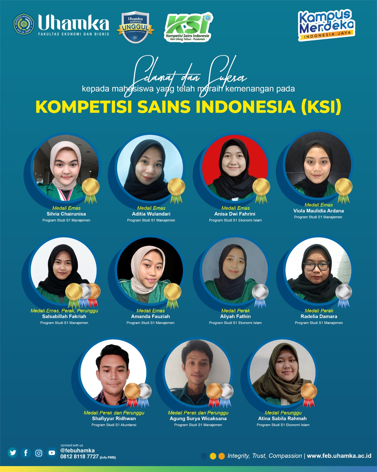 Mahasiswa Fakultas Ekonomi dan Bisnis UHAMKA berhasil meraih penghargaan dalam kategori wawasan Indonesia pada kegiatan Insight Yudhistira Cup 2023 Tingkat Nasional yang diselenggarakan oleh Indonesia Science Competition for Bright...