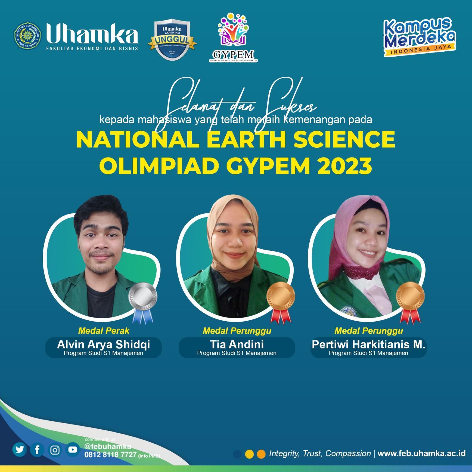 Bersaing pada kegiatan Nasional Earth Science Olimpiad Gypem 2023 Tingkat Nasional yang diselenggarakan oleh Global Youth and Peace Education Movement (GYPEM), Fakultas Ekonomi dan Bisnis UHAMKA (FEB UHAMKA) berhasil...
