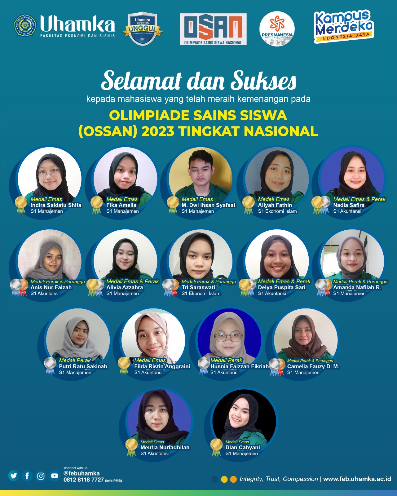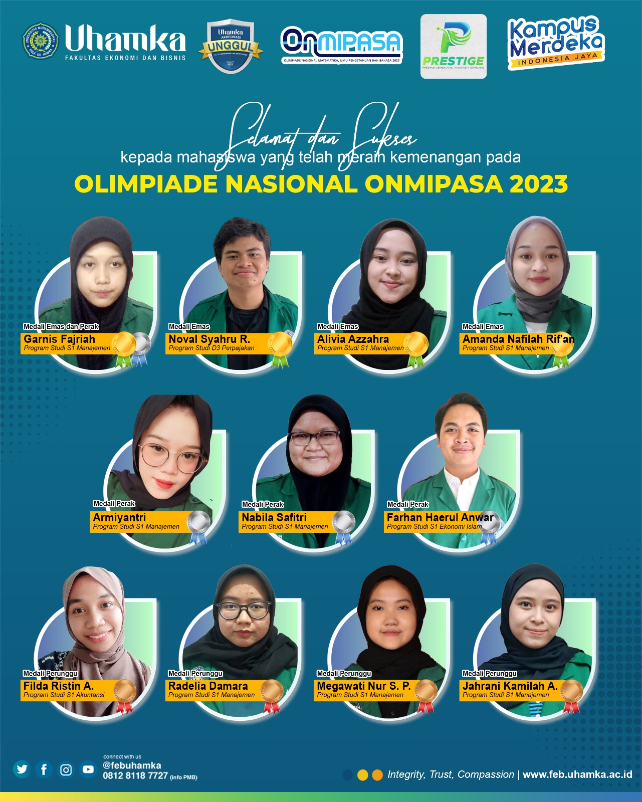 Pada Kegiatan OLIMPIADE NASIONAL ONMIPASA 2023 Tingkat Nasional yang diselenggarakan oleh Prestasi Cemerlang Indonesia Gemilang (PRESTIGE) sejumlah mahasiswa Fakultas Ekonomi dan Bisnis UHAMKA (FEB UHAMKA) berhasil meraih berbagai medali....