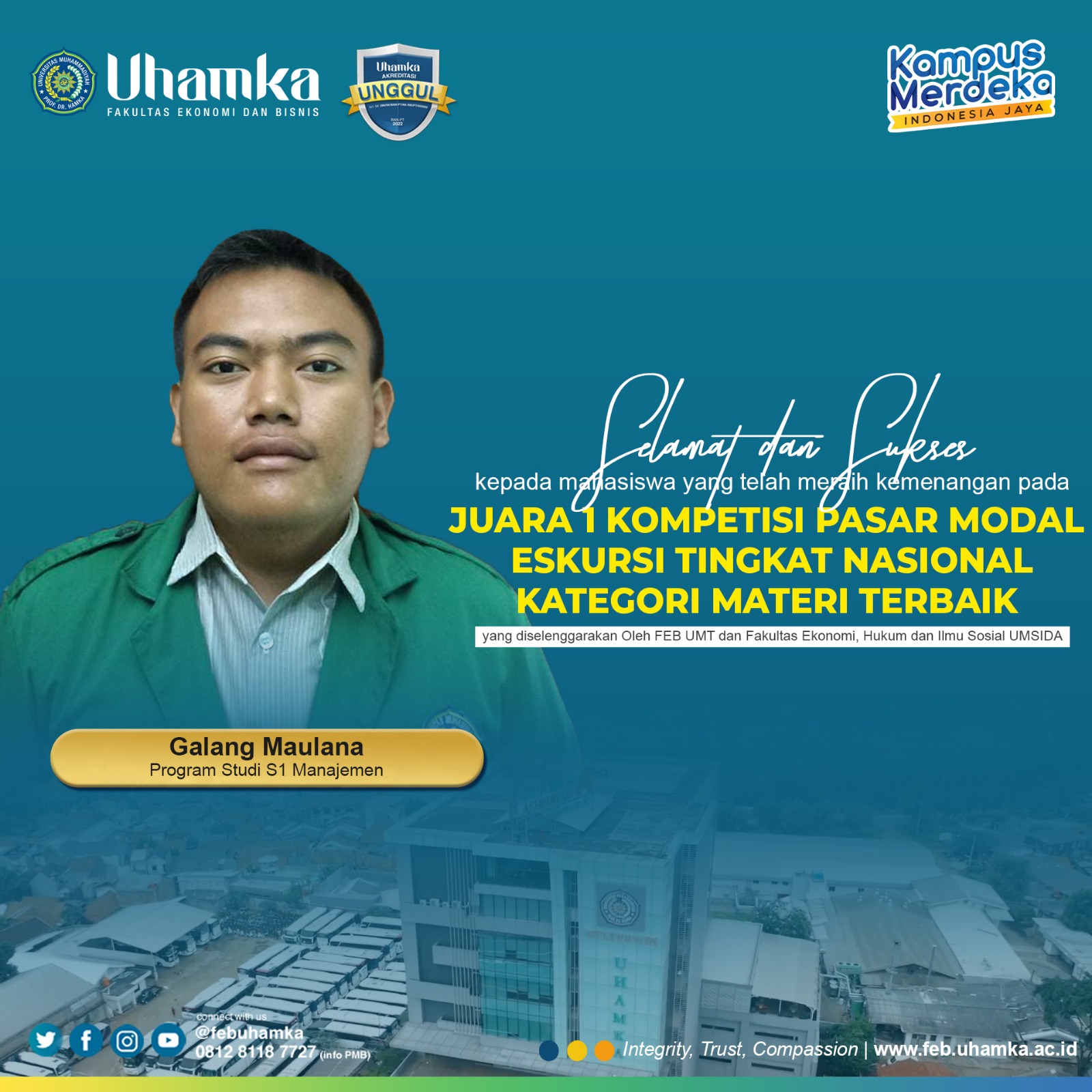 Fakultas Ekonomi dan Bisnis UHAMKA berhasil meraih Juara 1 dalam Kompetisi Pasar Modal Eskursi Tingkat Nasional Kategori Materi Terbaik yang diadakan oleh FBHIS UMSIDA (Fakultas Bisnis, Hukum, dan Ilmu...