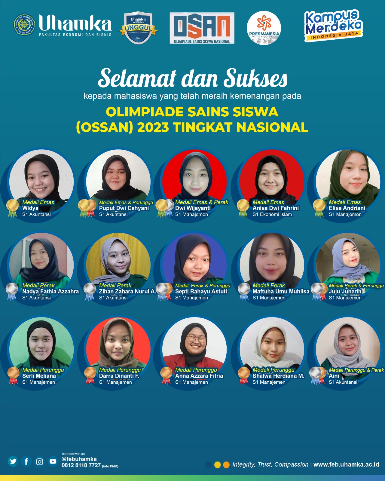 Belasan mahasiswa Fakultas Ekonomi dan Bisnis UHAMKA berhasil meraih puluhan medali dalam kegiatan Olimpiade Sains Siswa (OSSAN) 2023. Kompetisi Tingkat Nasional yang diselenggarakan oleh Yayasan Prestasi Maju Indonesia (PRESMANESIA)....