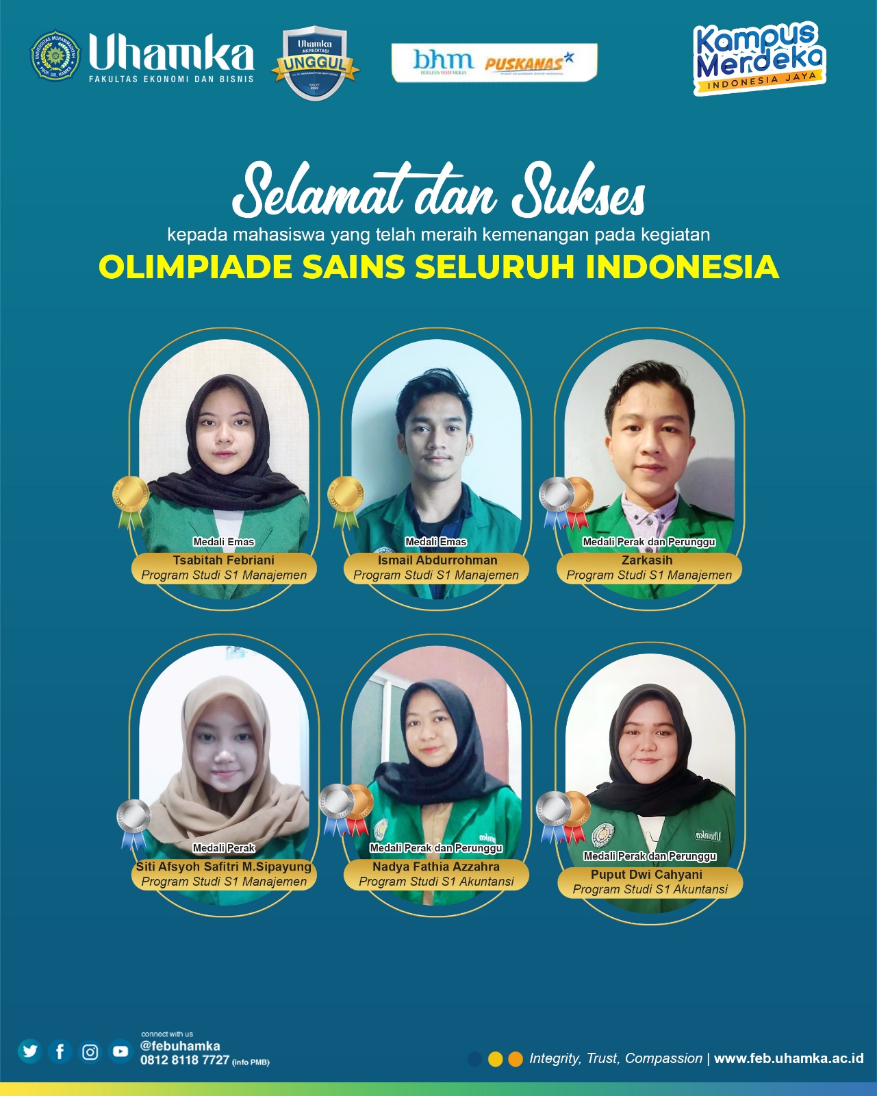 Sejumlah mahasiswa Fakultas Ekonomi dan Bisnis UHAMKA berhasil meraih medali Emas, Perak dan Perunggu pada kegiatan Olimpiade Sains Seluruh Indonesia yang diselenggarakan oleh Pusat Kajian Nasional (PUSKANAS). Mereka yang...
