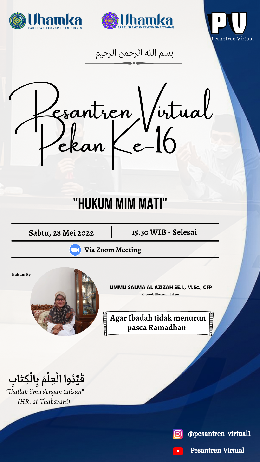 Jakarta – Pesantren Virtual FEB UHAMKA mengadakan pertemuan ke 14 yang di ikuti oleh 163 Mahasiswa via Zoom Meeting, Sabtu (28/05/2022). Pertemuan kali ini di awali dengan kultum yang...